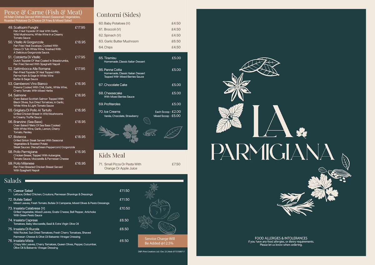 Welcome to La Parmigiana, a delightful Italian gem nestled at 219 Lower Richmond Rd., London. Renowned for its authentic flavors, the menu features a mouthwatering selection of pizzas, showcasing classics like the Margherita and the indulgent Quattro Formaggi, perfect for sharing or savoring solo. Size options of 12” and 15” cater to both quick bites and hearty meals.
